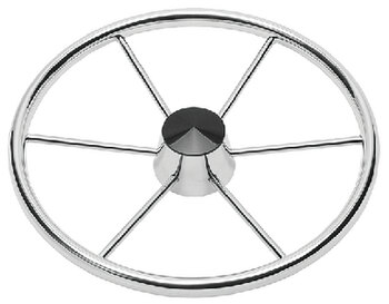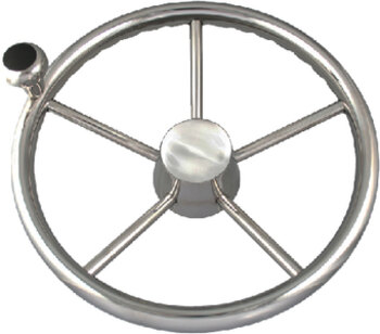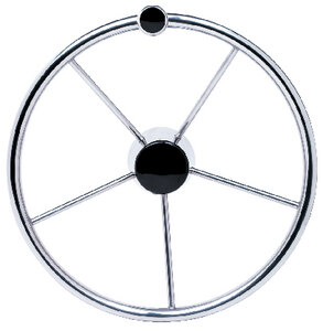 Seachoice 5 Spoke 15" Stainless Steel Destroyer Steering Wheel With Turning Knob & Black Center Cap