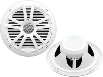 Ultramodern, cutting-edge styling with strong, clear audio. These 6-1/2" round coaxial speakers are UV and water resistant and deliver up to 150 watts of high quality sound. The integrated grill assembly simplifies installation.