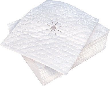 Precut 3/4" Hole and serrated cuts in middle to surround a fuel nozzle. To be used whenever fuel is being dispensed into a marine fuel tank or receptacle. Absorb fuel and oil only. Will not absorb water. Catch and absorb drips and spills. Near no-lint and very absorbent. Heavy weight, bonded and laminated.