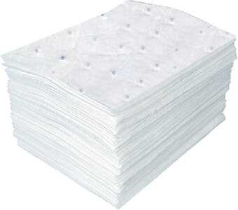 100% Recycled polypropylene Oil-Only Sorbents absorb all oil-based fluids such as engine oil, hydraulic oil, transmission fluid, engine fuels, gasoline and kerosene. These pads have quick absorption speed and capacity while still being flexible enough to conform to the shape needed and are laminated and bonded on both sides for increased tear resistance and durability.