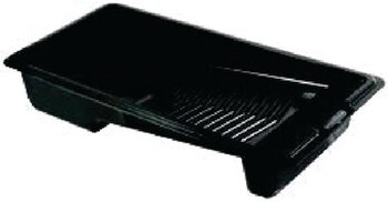 Smaller, easy to move steel tray w/ribbed bottom and ladder-hook legs. Solvent resistant. For 9-1/2" rollers, 1 quart capacity.