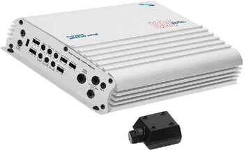 Powersports amplifier delivers efficient Class D power, from an ultra compact chassis. Withstands harsh conditions will fully marinized circuit boards. Includes selectable electronic crossover frequency adjustment, with lo-pass capability & selectable bass boost for quick and easy installation.