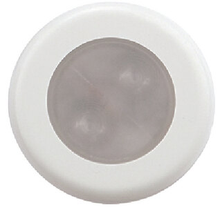 These 4-LED diode accent lights provide as much light output as a conventional 12V incandescent bulb, consuming only 0.8 amps of power and drawing at least 10 times less power than incandescents. Low heat makes them safer for enclosed areas. Perfect for accent lighting and as a courtesy light for steps and walkways. Extreme long life and resistant to vibration. 2.9\" diameter x 1\" depth. Requires 2\" diameter hole for mounting. Mounts with three #6 screws (not included).
