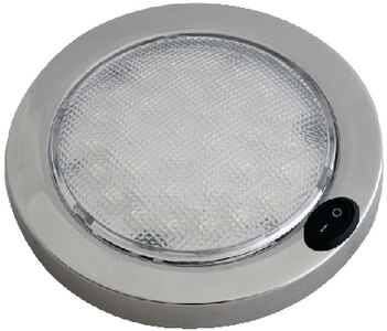 Low profile surface mount dome light. 3 position rocker switch for \"White/Off/Red\". The dome light has 21 warm white and 9 red LEDs. The warm white light provides a natural color setting for living spaces while the red light provides night vision and is used for spaces such as cockpits and steering stations.