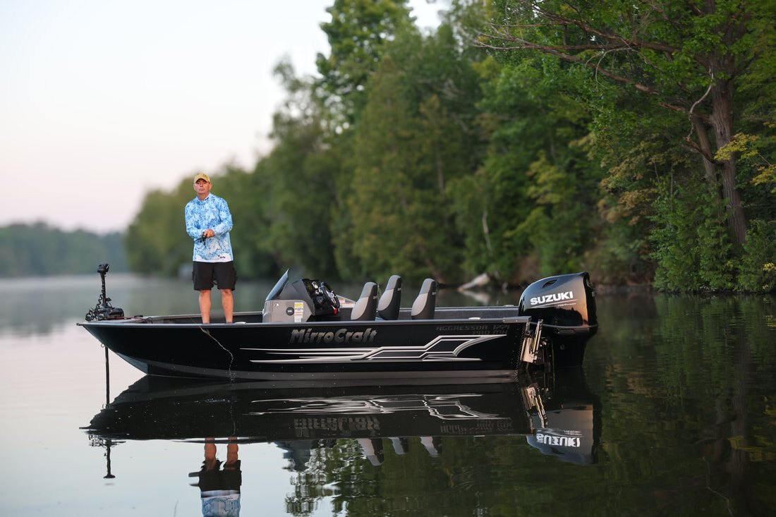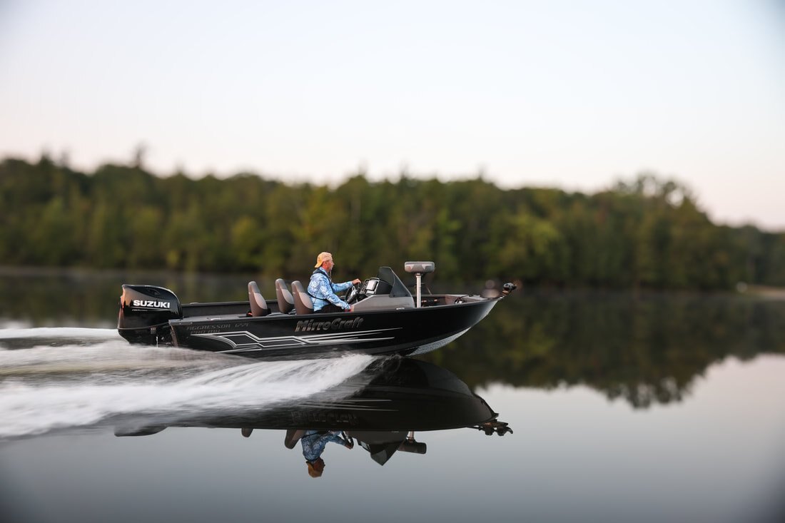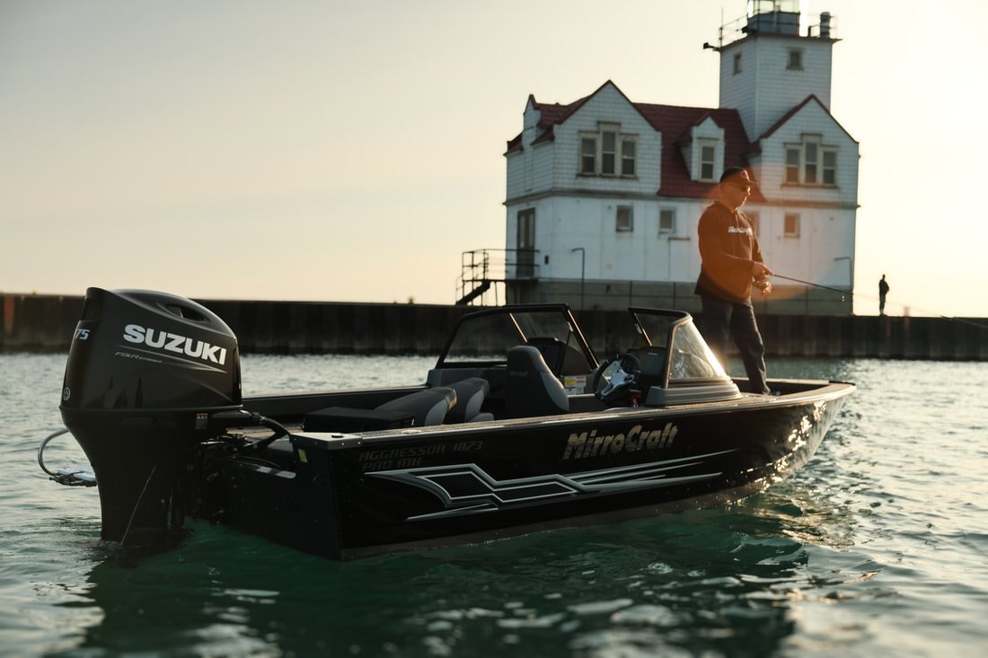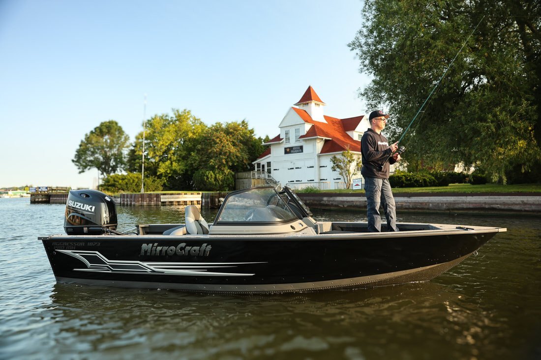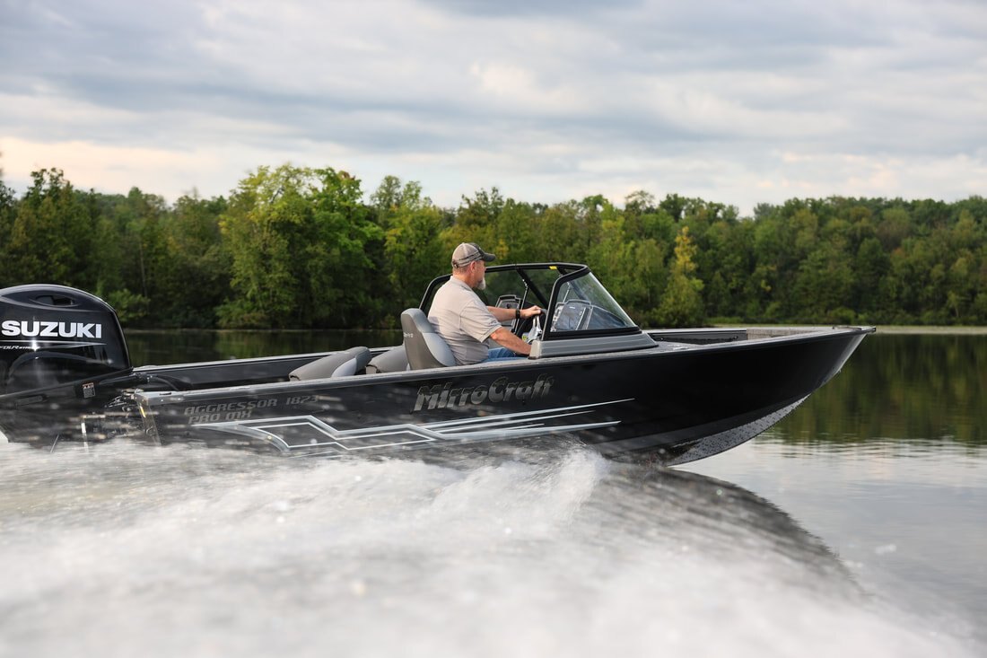 Their one-piece bottoms, double skinned hull and stronger 2" thick composite transoms, allow them to carry increased horsepower ratings as well. Aggressors offer pro-level components and pro-level performance when you power them with Mercury, Honda, Suzuki, Tohatsu or Yamaha outboards.