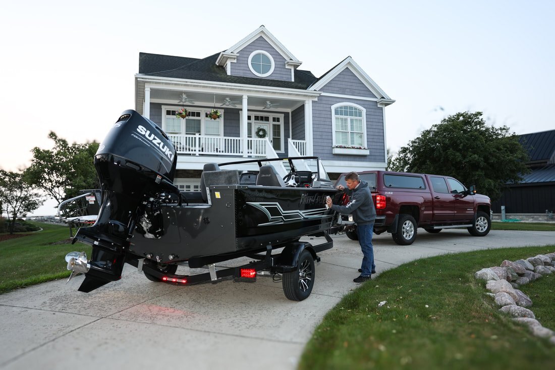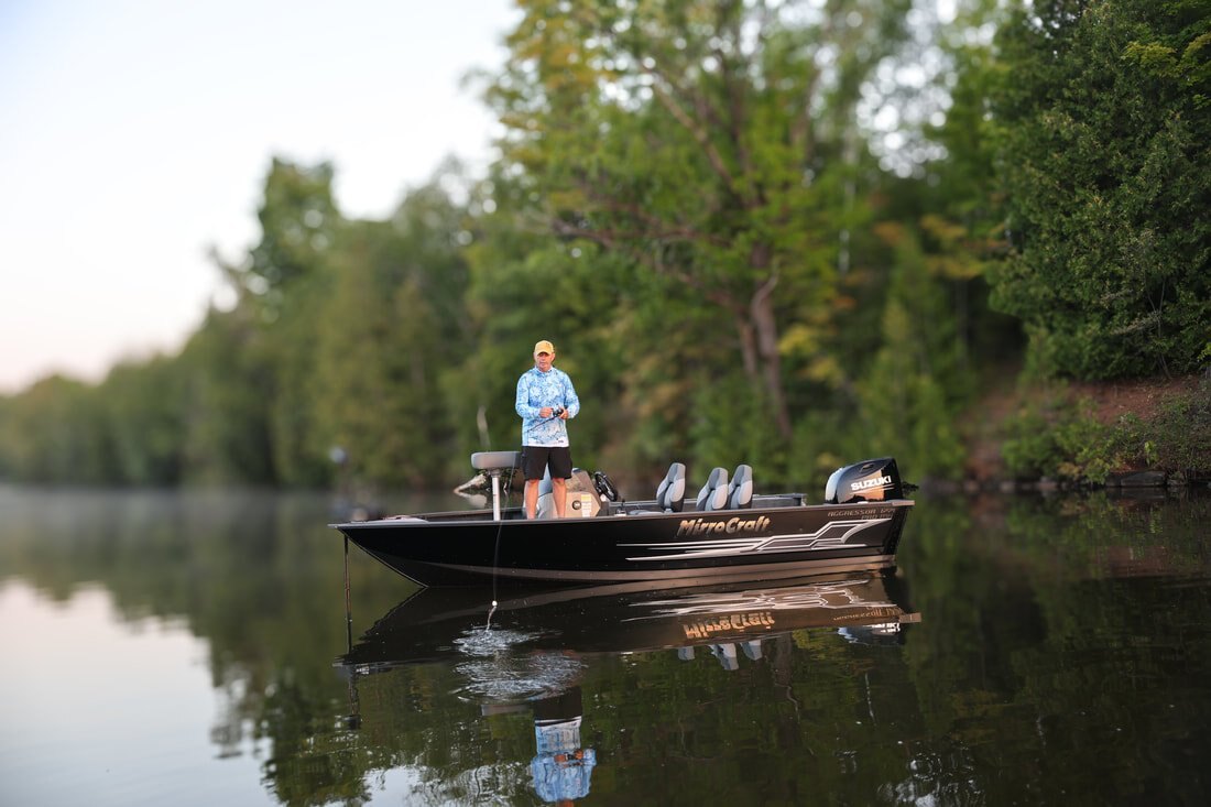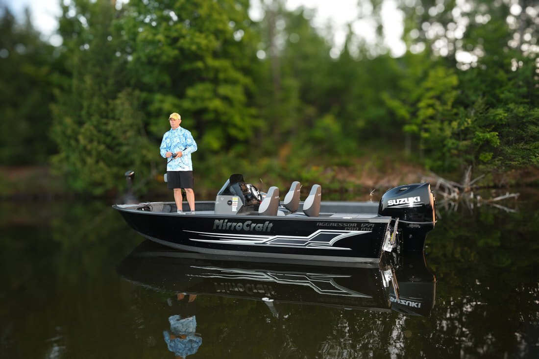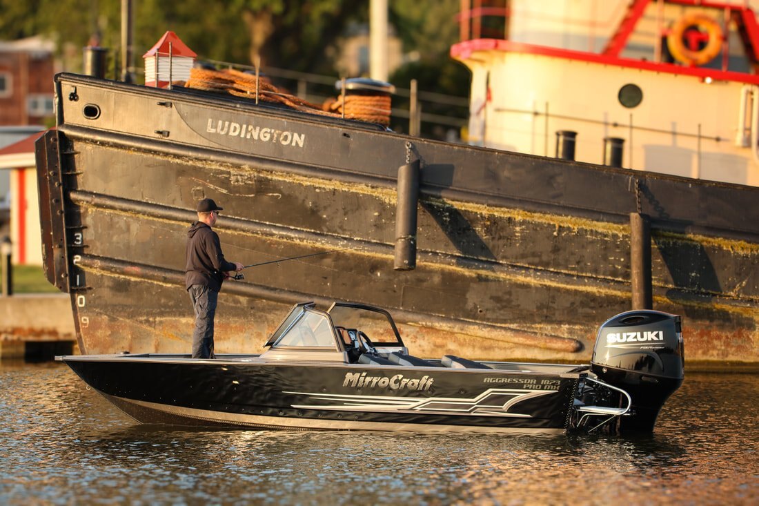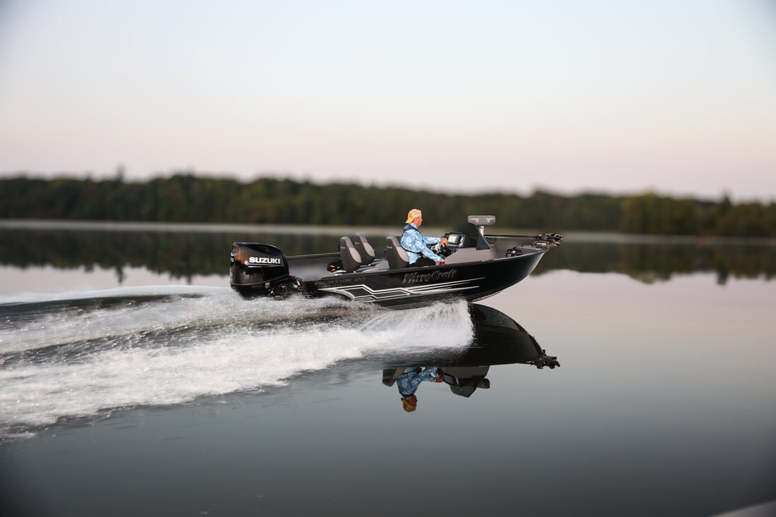 Their one-piece bottoms, double skinned hull and stronger 2" thick composite transoms, allow them to carry increased horsepower ratings as well. Aggressors offer pro-level components and pro-level performance when you power them with Mercury, Honda, Suzuki, Tohatsu or Yamaha outboards.
