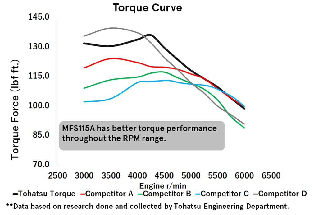 From 4-2-1 Performance Tuned Exhaust, MFS75/90/115 have the highest torque that gets you on plane quicker and reach the top end speed faster than any other competitors.