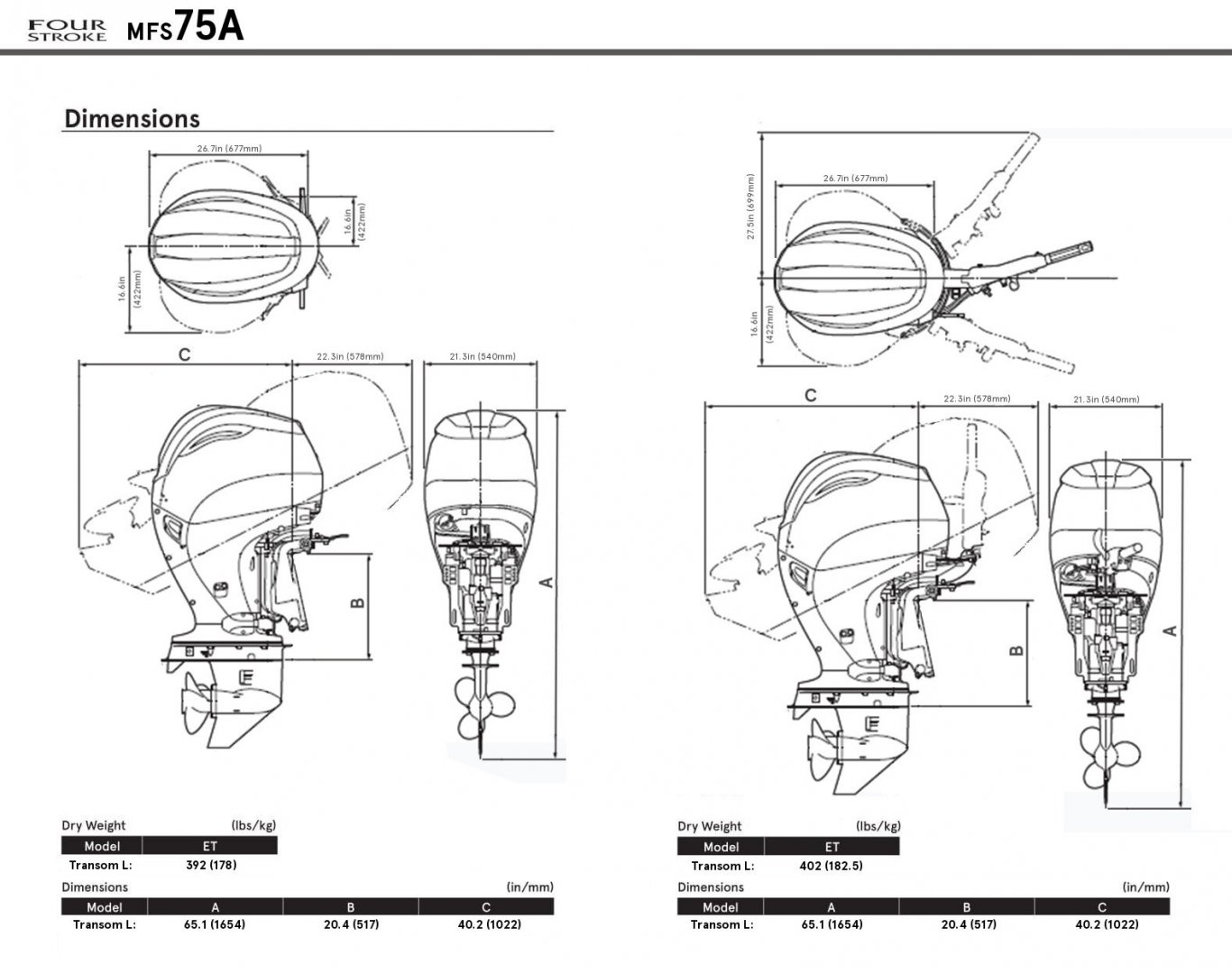 Equipped with standard features such as Variable Idle System allowing you to change the idle speed from 650 to 850 RPMs, a low gear ratio (2.08:1) giving you the increased low end torque your boat needs, a fresh-water Flushing System designed to make routine flushing easier, and a High Output 41 amp Alternator, the MFS75 provides the industry leading features you expect from Tohatsu.