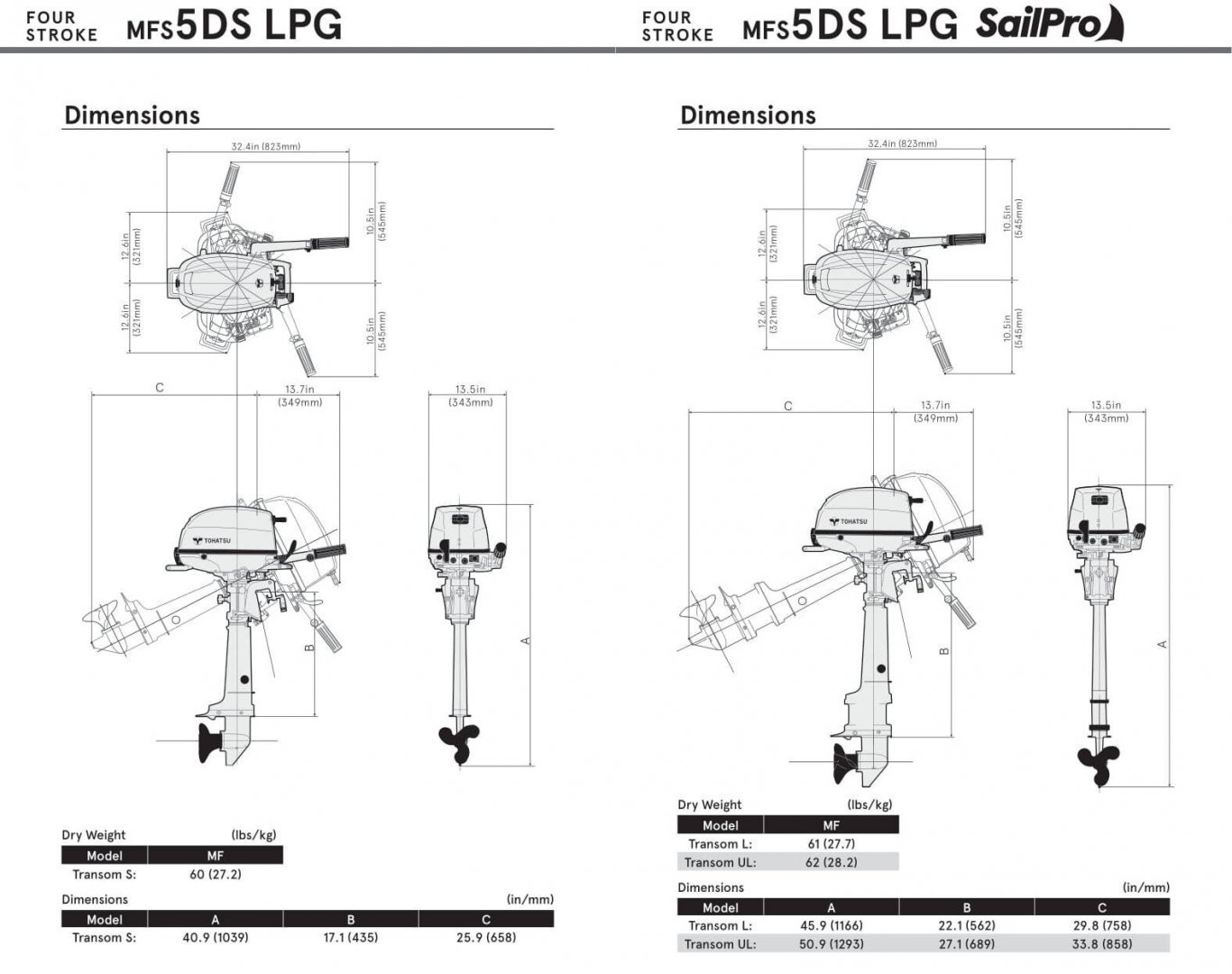 Tohatsu’s Propane outboard is equipped with a Safety Fuel Shut Off Valve which keeps propane fuel from continuously flowing when the engine is not in use. Plus, since the 5hp LPG does not require ethanol or gas, this propane outboard requires almost zero maintenance on fuel related components. We offer a 20” and 25” shaft SailPro model which includes a 12V 60W 5A charging system and high thrust prop. What sailor doesn’t want a virtually maintenance free engine that has their back?